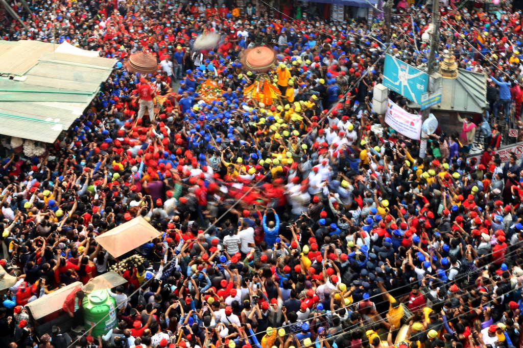 In many Newar communities, these groups move through the streets together during the jatra. They make sounds, perform small rituals, and symbolically “clear” the area. The different colors help identify each group and their responsibility during the procession.