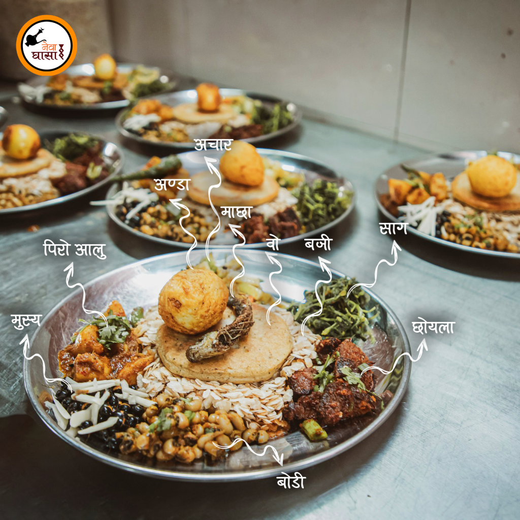 Like all Newari festivals, food plays a big role. Families prepare and enjoy traditional dishes like Samay Baji, Chhoila, Bara, and Aila during the celebration. It’s a time to gather, eat, and celebrate together.